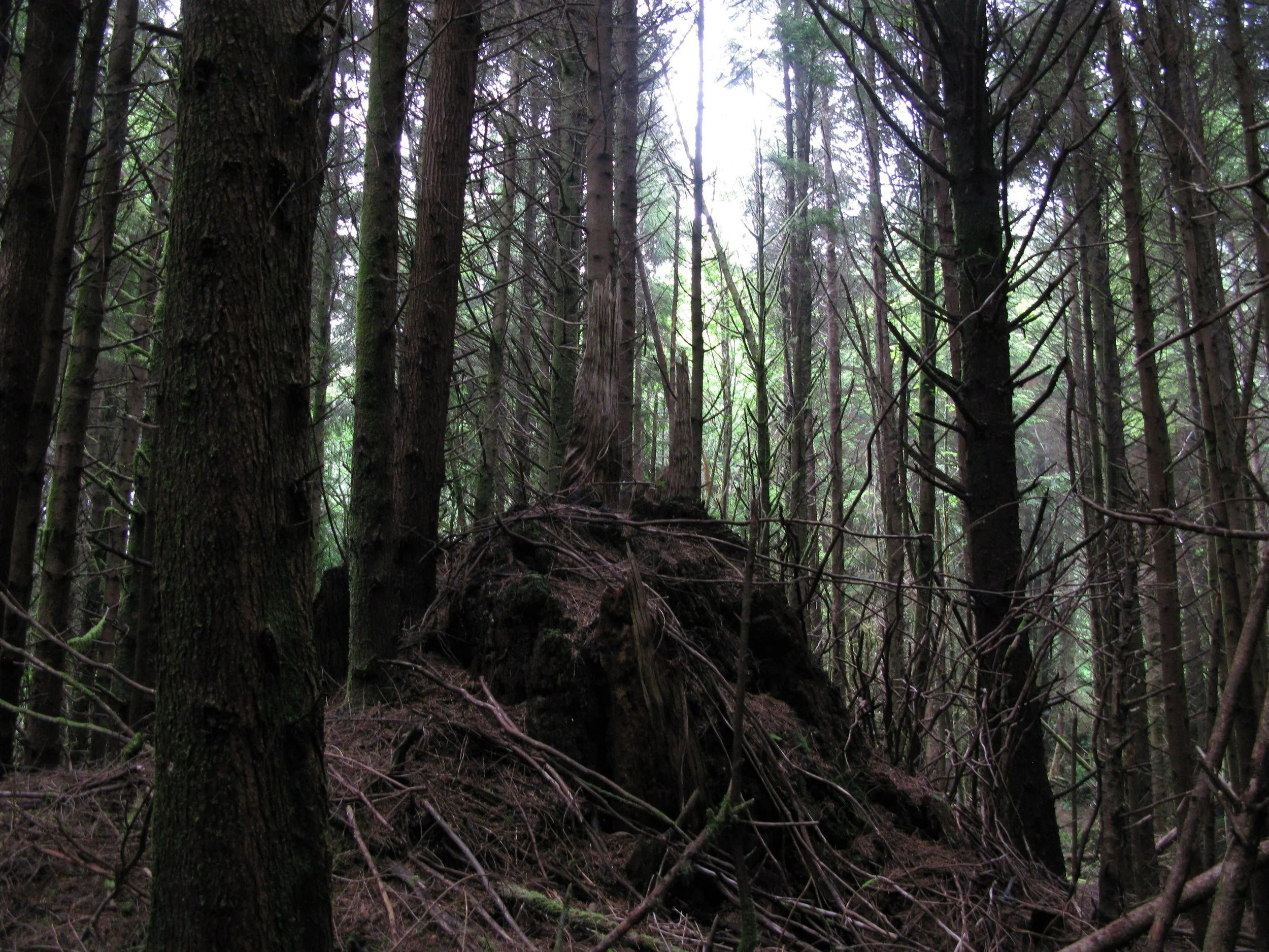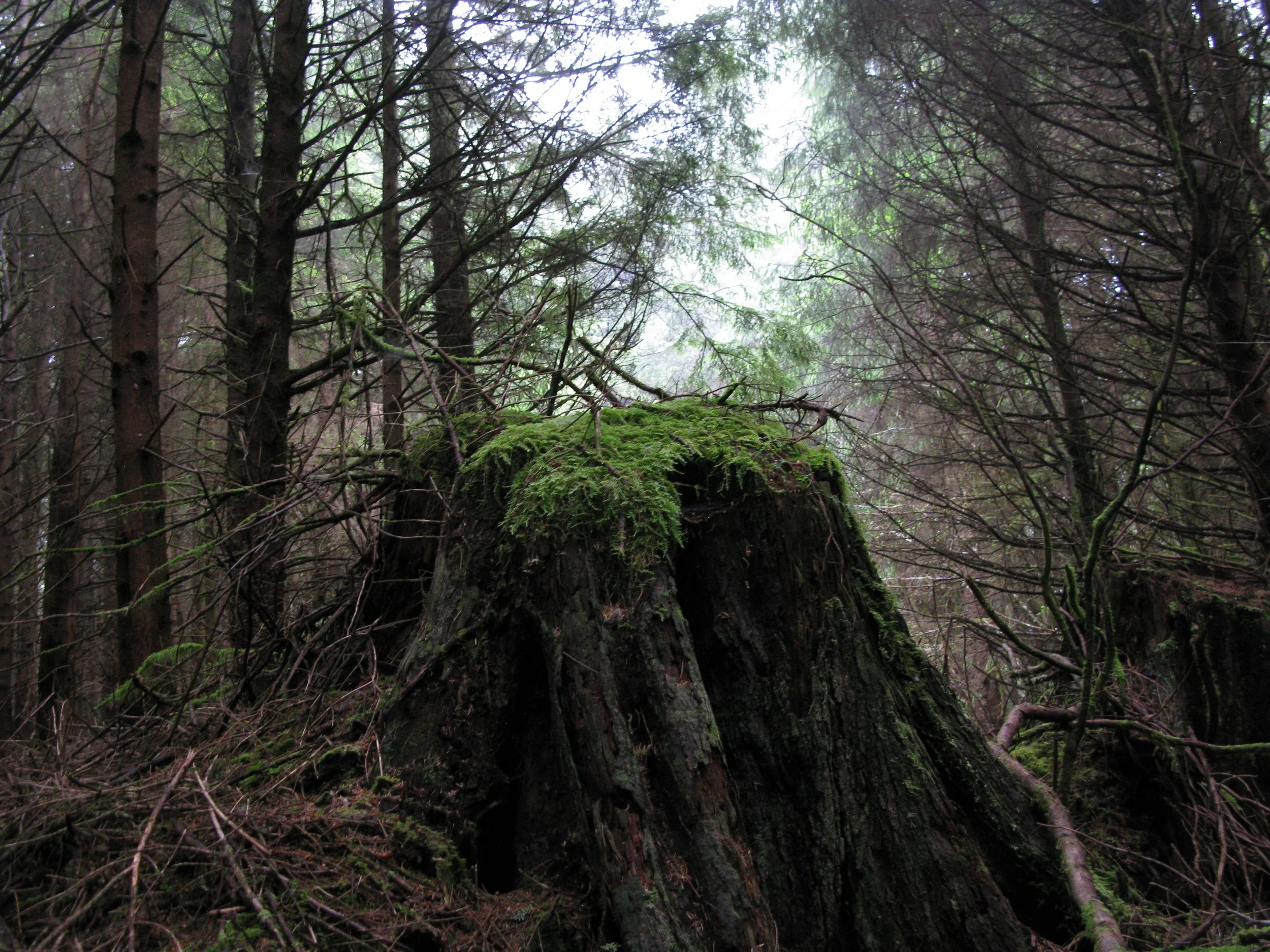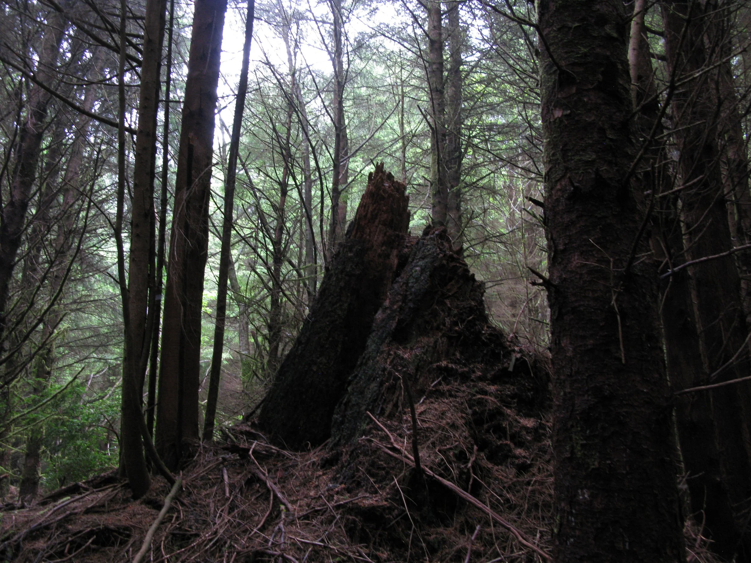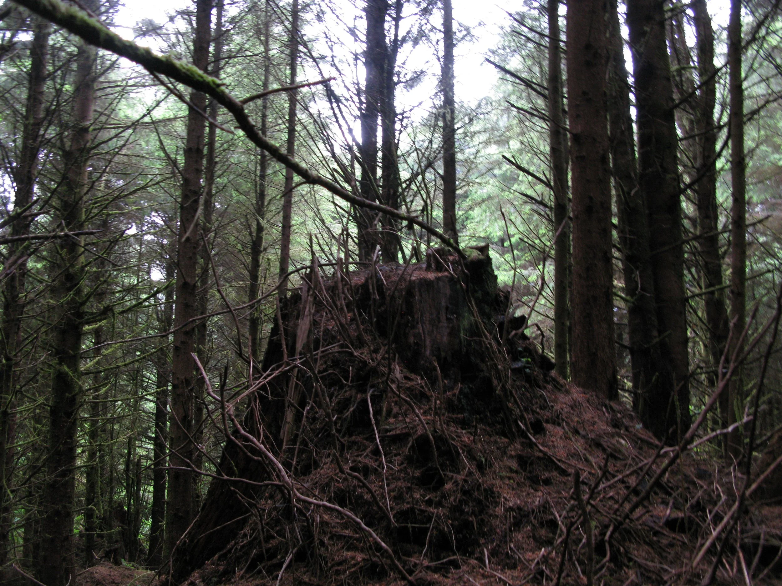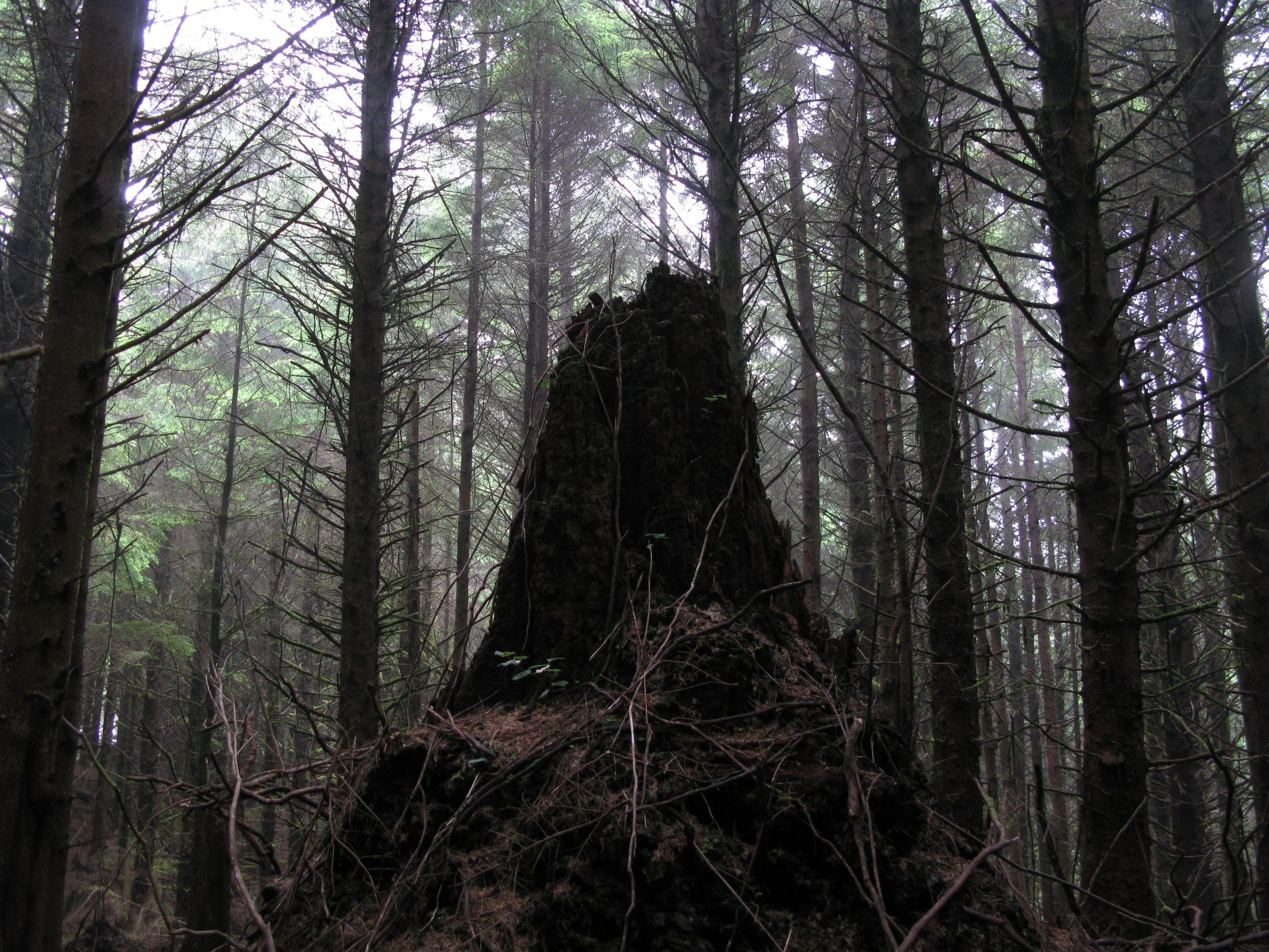 For the last hundred years or so these monolithic stumps have basked in the light that their foliage used to block out. That ray of light that shines in the canopy from the loss of such a large shade leads to enhanced growth for the vegetation that happened to germinate in that area. A flourish of bright green in forest of otherwise dark hues.